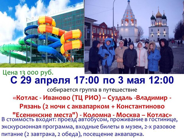 В майские праздники по ЗОЛОТОМУ КОЛЬЦУ из Великого Устюга и Котласа!